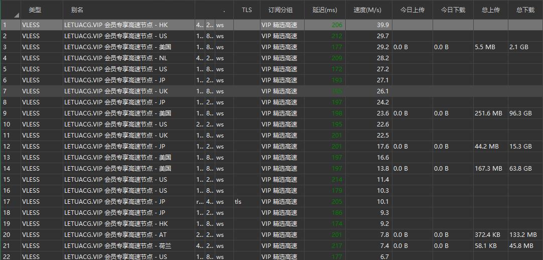 VIP专享 高速精选节点,当出现较多节点无法正常使用时,会一次更新大量新的节点。