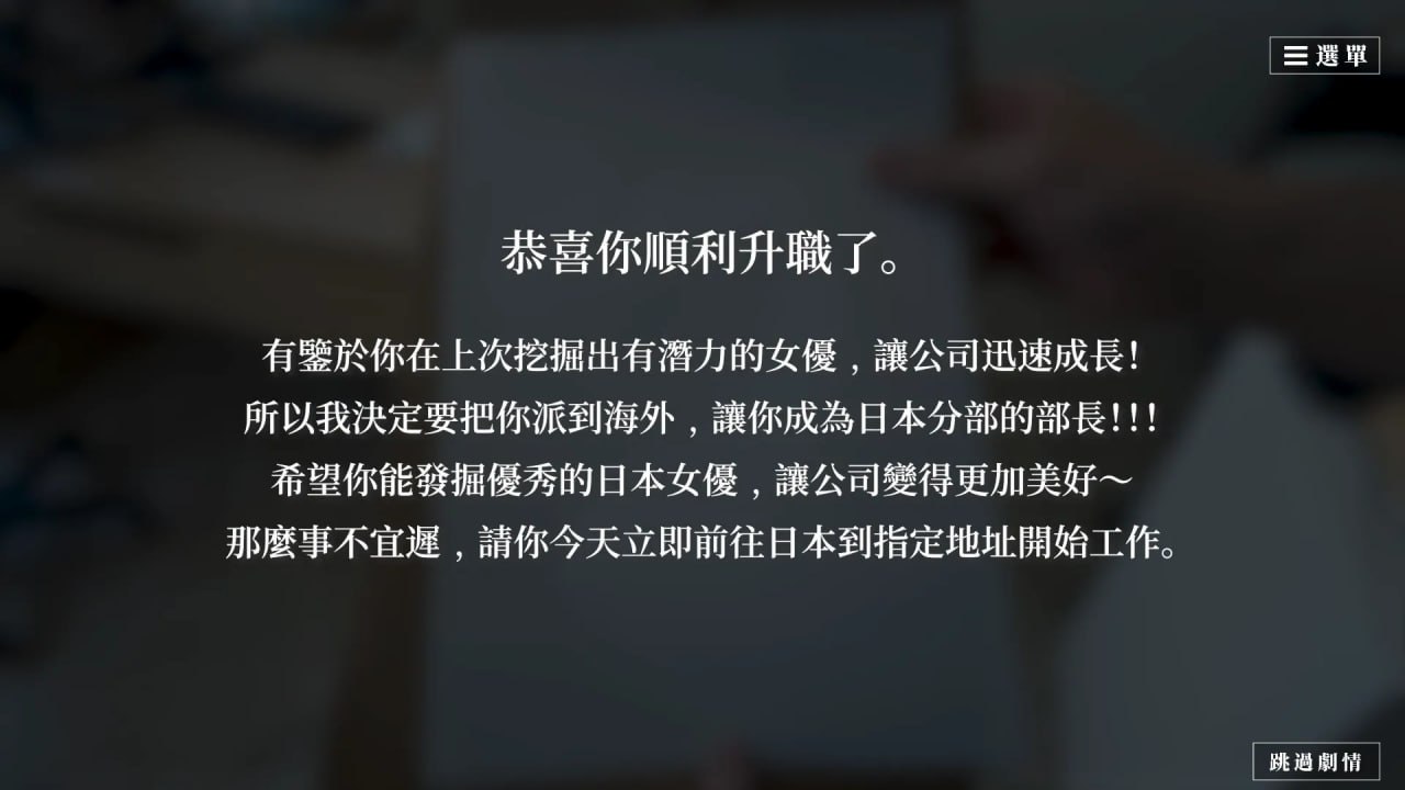 有鑒於面試官先前挖掘出有潛力的女優,公司迅速成長!老闆決定將你外派至海外,成為日本分部部長!到了日本的第一天卻馬上被神秘組織M盯上,成為了實驗對象...《這個面試有點硬》玩家不再是菜鳥面試官,成功面試66位女模的你,已經脫胎換骨,收到老闆的任務,出發日本,卻遇到了邪惡組織「M」!這次你是否能不忘初衷達成任務,或是深陷其中淪為性愛的俘虜!?