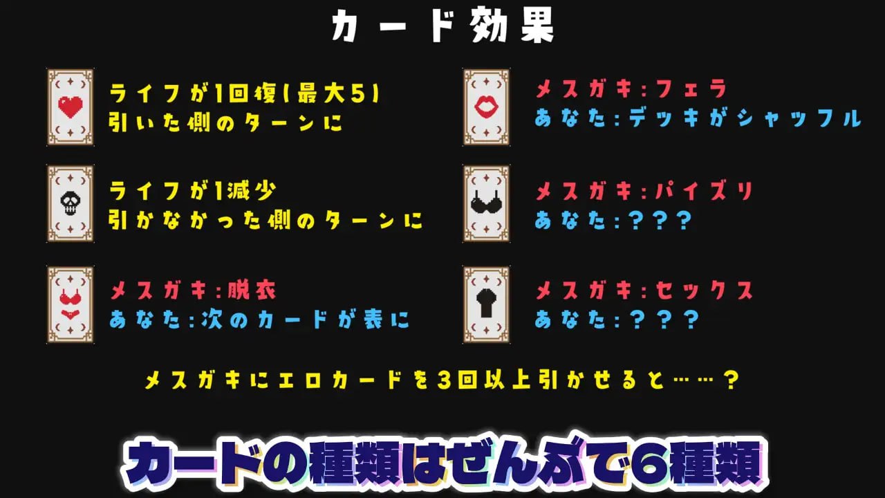 这是一款使用8张卡牌为一组进行对战的俄罗斯轮盘式情色卡牌游戏。