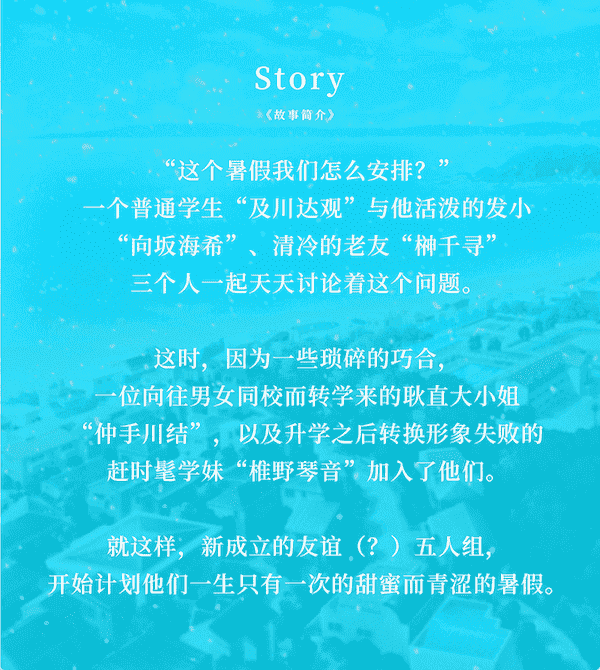 就这样,新成立的友谊(?)五人组,开始计划他们一生只有一次的甜蜜而青涩的暑假。