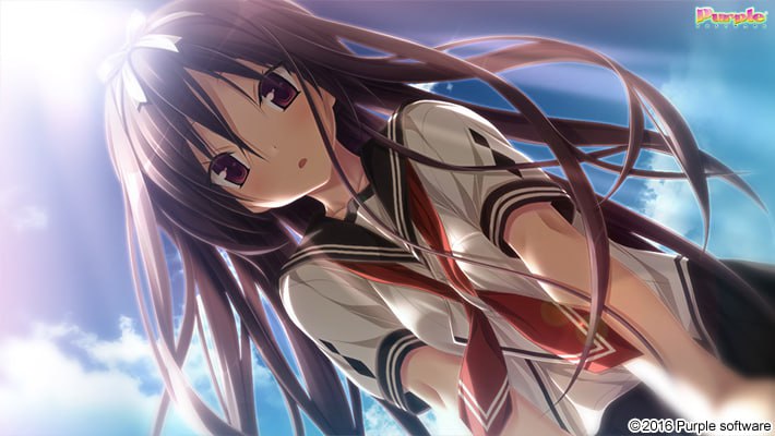 无瑕的双眸带着些许稚气,长长的秀发随肩而下配上朴素的白色发带,给人以邻家少女般可爱又不失亲切的少女,其名,织部 心。